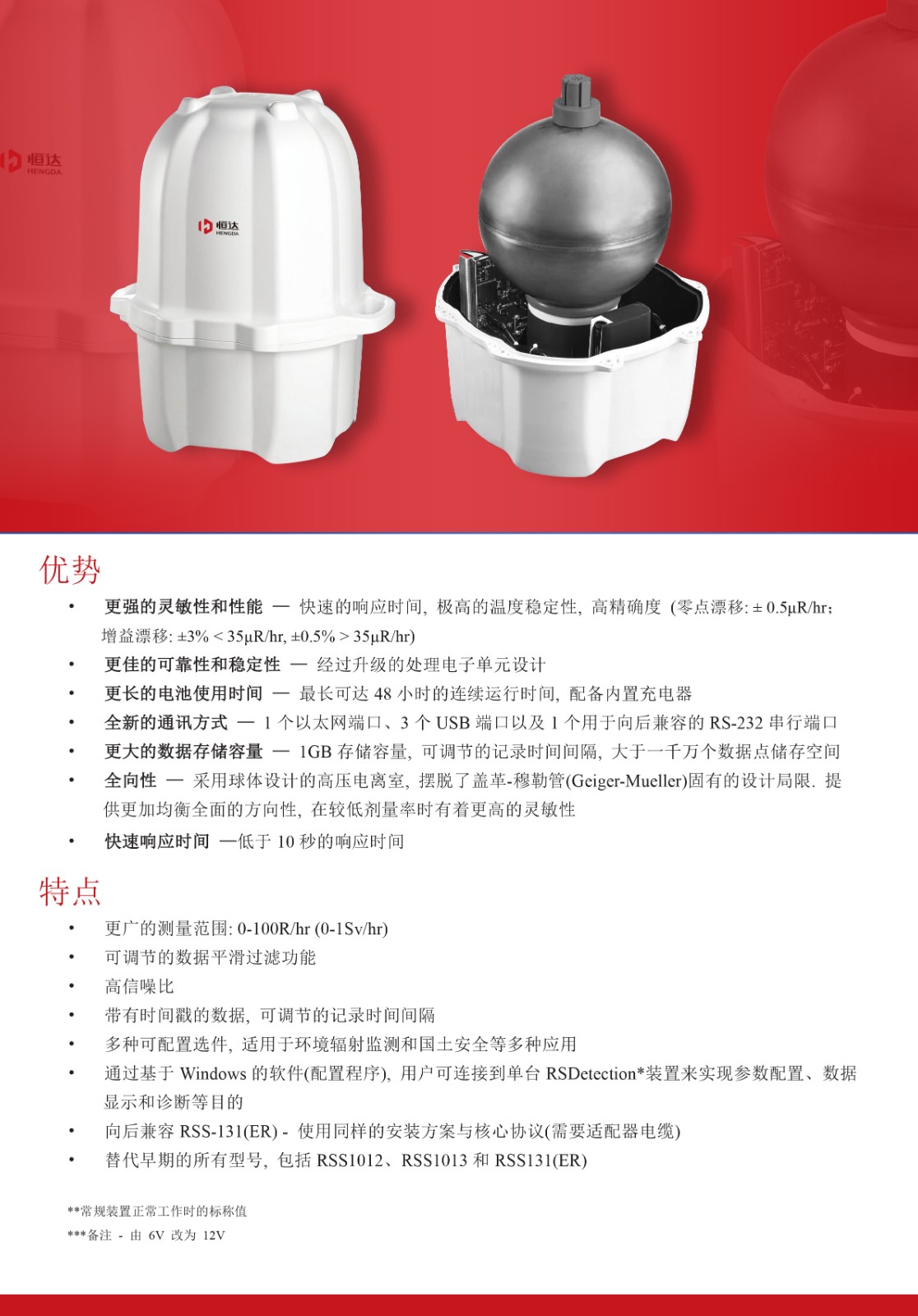 本產(chǎn)品為新一代的環(huán)境輻射監(jiān)測設(shè)備,在低劑量水平伽馬輻射的探測和測量方面提供了更加卓越的技術(shù)與表現(xiàn)。本產(chǎn)品繼續(xù)沿用前代產(chǎn)品的環(huán)境γ輻射劑量率監(jiān)測技術(shù),但在以下多個關(guān)鍵領(lǐng)域進行了改進:靈敏性、可靠性、穩(wěn)定性。本產(chǎn)品采用新型防風(fēng)雨外殼,電子器件和診斷原件都進行了更新,能夠在極端環(huán)境中提供穩(wěn)定可靠的操作,非常適合從國土安全到核電廠的各種廣泛應(yīng)用。